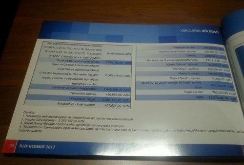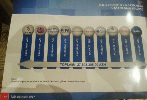 AFFA-nın Maliyyə və Mühasibat Departamenti 2017-ci il üzrə İllik Hesabatını təqdim edib. Bu barədə AFFA-nın bu gün təşkil olunmuş Hesabat Konfransında açıqlama verilib. Hesabatda bildirilir ki, ötən il ərzində qurumun büdcəsinə 27 milyon 608 min 305 manat daxil olub. Bunun 8 milyon 234 min 150 manatı baş sponsor SOCAR-dan, 6 milyon 260 min 268 manatı UEFA-dan, 5 milyon 955 min 600 manatı milli komandanın yayım hüququnun satışından, 2 milyon 718 min 896 manatı FİFA-dan, 2 milyon 538 min 981 manatı "AzərİdmanServis"dən, 698 min 416 manatı "Bakcell"dən, 177 min manatı "Paşa Sığorta"dan, 112 min 100 manatı "Boulevard Hotel"dən, 94 min 400 manatı "Coca Cola"dan, 818 min 494 manatı isə digər mənbələrdən daxil olub. Assosiasiya 2017-ci ildə 21 milyon 573 min 667 manat xərcləyib. Bunun 10 milyon 154 min 918 manatı milli komandalara (əsas, U-21, U-19, U-17, U-16, qadınlar üzrə U-21, U-19, U-17, U-15, futzal, çimərlik futbolu), 3 milyon 288 min 43 manatı əmək haqqı və ezamiyyə xərclərinə, 2 milyon 340 min 815 manatı uşaq və gənclər futbolunun inkişafı, qızlar və oğlanlardan ibarət U-10-dan başlayaraq U-19-a qədər liqaların təşkili, turnirlər və beynəlxalq layihələrin həyata keçirilməsinə, 1 milyon 445 min 308 manatı hakimlər və hakim-inspektorlara, 490 min 889 manatı təsərrüfat xərclərinə, 1 milyon 83 min 125 manatı oyunların təşkilinə, 407 min 534 manatı aviabilet və otel xərclərinə, 265 min 869 manatı nəqliyyat xərclərinə, 228 min 106 manatı kommunal və rabitə xərclərinə, 203 min 34 manatı təhsilə, 297 min 235 manatı Marketinq və Sponsorluq Departamentinə, 55 min 596 manatı "Cross Culture" layihəsinə, 102 min 896 manatı "Elit Məşq" layihəsinə, 136 min 161 manatı Media Komitəsinə, 77 min 396 manatı "Futbol dərsi" layihəsinə, 244 min 439 manatı "Bakı AVRO-2020" layihəsi ilə bağlı hazırlıq işlərinə, 752 min 303 manatı isə digər xərclərə sərf olunub. Qeyd edək ki, hesabatda yeni investisiyalar və infrastruktura aid xərclər nəzərdə tutulmayıb. Vergilər üzrə hərəkət 2 milyon 353 min 147 manat təşkil edib . |