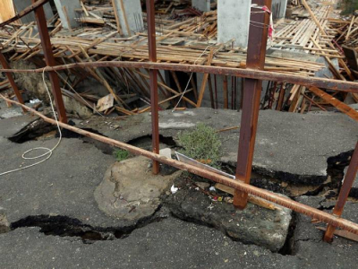 Bakının Nəsimi rayonu, Səməd Vurğun küçəsində inşa edilən çoxmərtəbəli yaşayış binasının tikintisi zamanı bina ilə piyada səkisi arasında istinad divarları çəkilib. İstinad divarı tikinti boyunca aparılıb. Biz düşünürük ki, piyada səkisinin sürüşməsinə səbəb yağış sularıdır.