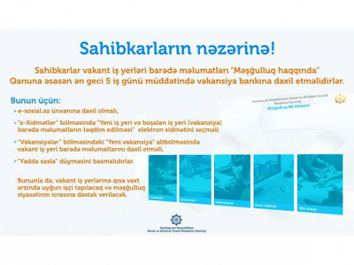 İşəgötürənlər yeni və ya boş (vakant) iş yerləri barədə məlumatları “Məşğulluq haqqında” Qanuna əsasən ən geci 5 (beş) iş günü müddətində vakansiya bankına daxil etməlidirlər.