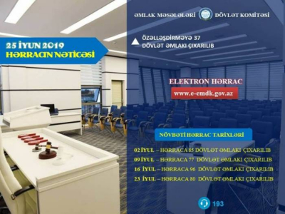 Əmlak Məsələləri Dövlət Komitəsi tərəfindən iyunun 25-də dövlət əmlaklarının özəlləşdirilməsi üzrə növbəti hərrac reallaşdırılıb.