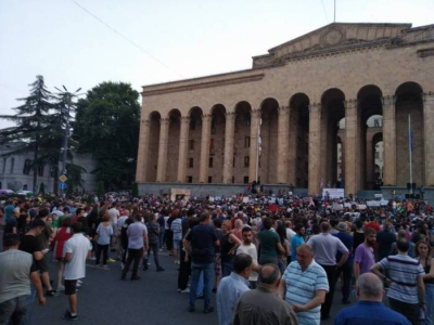 Tbilisidə parlamentin binası qarşısında növbəti aksiya keçirilir.