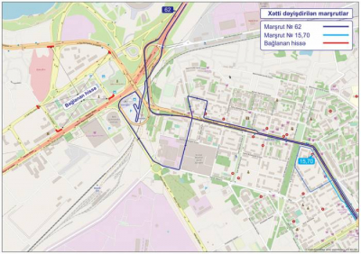 18-28 iyul traixlərində isə Xəlil Rza Ulutürk küçəsinin bağlanması ilə əlaqədar 15, 60, 62, 70 nömrəli marşrutların hərəkət sxemində dəyişiklik ediləcəkdir.