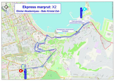 b) X2 xətti üzrə avtobuslar (Elmlər Akademiyası m/st – Bakı Kristal Zalı)