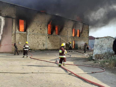 Sumqayıt şəhəri, 18-ci mikrorayonda mebel sexində yanğın söndürülüb.