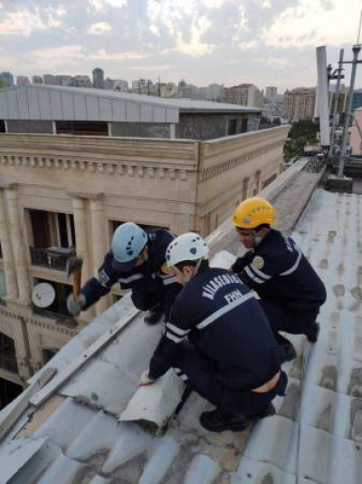 Əsən güclü külək nəticəsində Bakı şəhərinin Qaradağ rayonunda çoxmərtəbəli yaşayış binasının dam örtüyündə navalça asılı vəziyyətdə qalaraq bina sakinlərinin və yaxınlıqdan keçən vətəndaşların həyatı üçün təhlükə yaradıb.