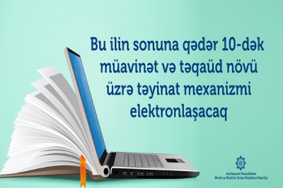 Cari ilin ilk aylarından sosial müavinətlərin elektron təyinatı infrastukturunun qurulması işlərinə başlayan Əmək və Əhalinin Sosial Müdafiəsi Nazirliyi ilin sonuna kimi 10-a qədər müavinət və təqaüd növü üzrə təyinat mexanizmini elektronlaşdıracaq.