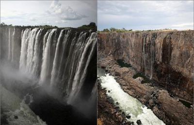 Dünyanın ən əzəmətli şəlalərindən biri olan Viktoriya şəlaləsi Afrikanın cənubunda yaranan quraqlıqla əlaqədar nazik “su şırnağına” çevrilib.