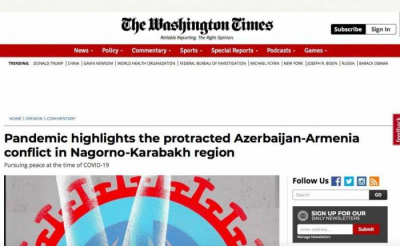 ABŞ-ın nüfuzlu və geniş auditoriyaya malik mətbu orqanı “Washington Times” qəzetində Azərbaycanın bu ölkədəki səfiri Elin Süleymanovun “Pandemiya Dağlıq Qarabağ regionunda həlli uzanan Ermənistan-Azərbaycan münaqişəsini işıqlandırır” (Pandemic highlights the protracted Azerbaijan-Armenia conflict in Nagorno-Karabakh region) sərlövhəli məqaləsi dərc edilib.