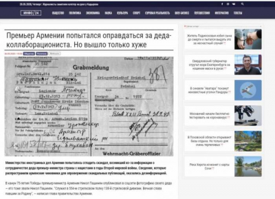 “Ermənistanın Xarici İşlər Nazirliyi ölkənin baş nazirinin babasının İkinci Dünya müharibəsi illərində nasistlərlə əməkdaşlığı barədə informasiya səbəbindən qopan qalmaqalı ört-basdır etməyə çalışıb. Ermənistan məmurlarının qalmaqallı yazıların təkzib edilməsi üçün yaydıqları məlumat yanlış informasiya olub. Ermənistanın baş naziri Nikol Paşinyan Qələbənin 75 illiyi ərəfəsində sosial şəbəkədə elə Nikol Paşinyan adını daşımış babasının fotosunu paylaşıb. “138-ci atıcı diviziyanın 554-cü atıcı alayında xidmət edib. Vətən uğrunda canından keçənlərə əbədi eşq olsun!”, - deyə Ermənistan hökumətinin başçısı yazıb.