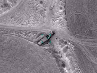 Buna görə də düşmən sərəncamında olan bütün sursatları döyüşlərin ən qaynar getdiyi istiqamətdə istifadə etməyə çalışır.Oktyabrın 31-də axşam saatlarında ərazinin havadan müşahidəsi zamanı sursatla dolu iki yük maşının daldalandığı yer müəyyən edilib. İstiqamətlənmiş dəqiq atəş zərbəsi ilə hərbi nəqliyyat vasitələri dərhal məhv edilib.Həmin anları əks etdirən videogörüntüləri təqdim edirik.