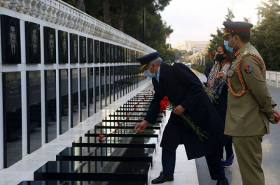Müdafiə Nazirliyindən bildirilib ki, Pakistan nümayəndə heyəti Şəhidlər xiyabanını ziyarət edərək ölkəmizin müstəqilliyi, ərazi bütövlüyü uğrunda şəhid olmuş vətəndaşlarımızın məzarları üzərinə əklil və gül dəstələri qoyub, xatirəsini ehtiramla yad edib.