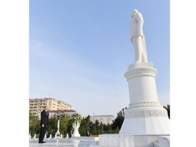 Dövlətimizin başçısı ümummilli lider Heydər Əliyevin şəhərin mərkəzində ucaldılmış abidəsini ziyarət edərək önünə gül dəstəsi qoydu.
