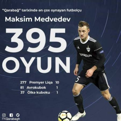 Azərbaycan Premyer Liqasının 20-ci turunda “Qarabağ”ın “Zirə” ilə (0:0) oyunu ağdamlıların müdafiəçisi Maksim Medvedev üçün əlamətdar olub.