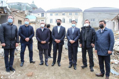 Nümayəndə heyəti həlak olan dinc sakinlərin xatirəsinə ehtiram əlaməti olaraq erməni terroru nəticəsində dağıdılmış yaşayış binasının ətrafına gül dəstələri düzüblər.